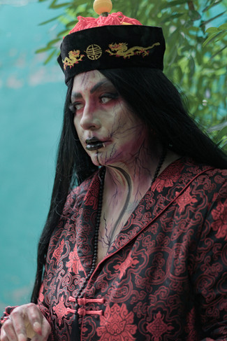 The character I am designing will be presented as an spiritual figure who will be most emphasized through the characteristics of his head. The image on the left is one of my inspirations of this design because the character will display prominent paint markings covering his lips, stretching down vertically down the chin and to the chest. Additionally, as inspired by the image on the right, he will have two loops of his loc circling around an eyeball for each hoop. I want him to have a scary and stoic expression while I want him to hunch his skinny torso, appearing to be physically weak yet dangerously threatening. My goal is for the design to impose fear and caution towards the audience, as his prominent head characteristics contrast with his helpless presence through his body type.